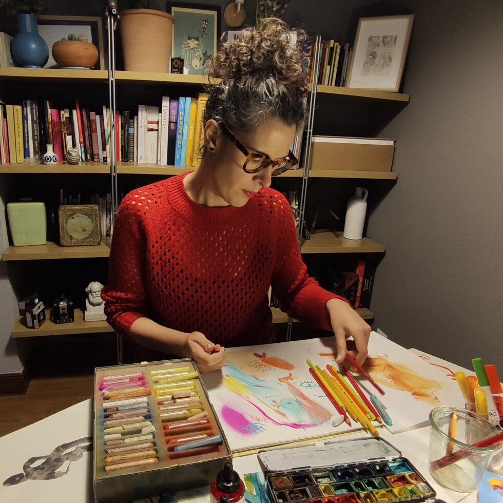 Soy licenciada en Bellas Artes y, desde 2008, compagino mi trabajo como ilustradora con la docencia en dibujo.