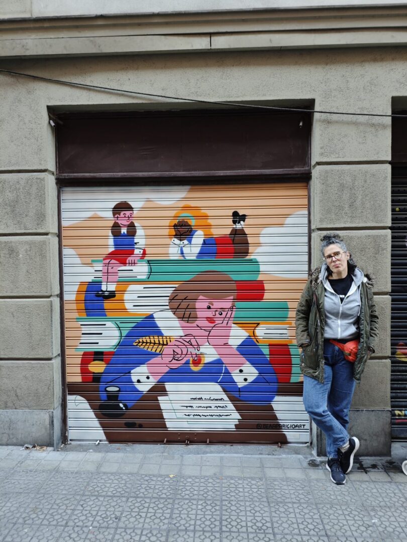 2025. Diseño y ejecución de 2 murales en persianas para el proyecto de recuperación del barrio de Bilbao la Vieja y San Francisco «Dendart». Los diseños responden a la representación del oficio de redarás junto a la Ría de Bilbao y a la figura de María de Maeztu.